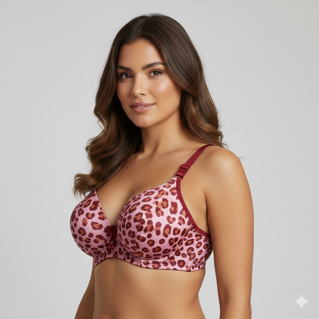 Unleash your inner confidence with the Wild Essence collection. This bra combines a fierce, high-fashion leopard motif with a smooth satin finish, making it a standout addition to your lingerie drawer. Designed for the woman who wants both personality and performance, it provides a seamless silhouette under clothing without compromising on bold style.